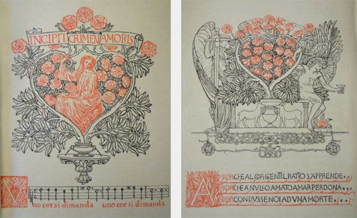Lo stesso dicasi per le illustrazioni ad hoc realizzate da Adolfo De Carolis per il prezioso volume della Francesca da Rimini, evidentemente ispirate al dipinto Daydream di Rossetti (1880, Londra, Victoria & Albert Museum), a sua volta legato al poema The day-dream di Tennyson; molto amato da d’Annunzio, il quale ne disquisisce con l’anglista ed amico Enrico Nencioni, a più riprese.