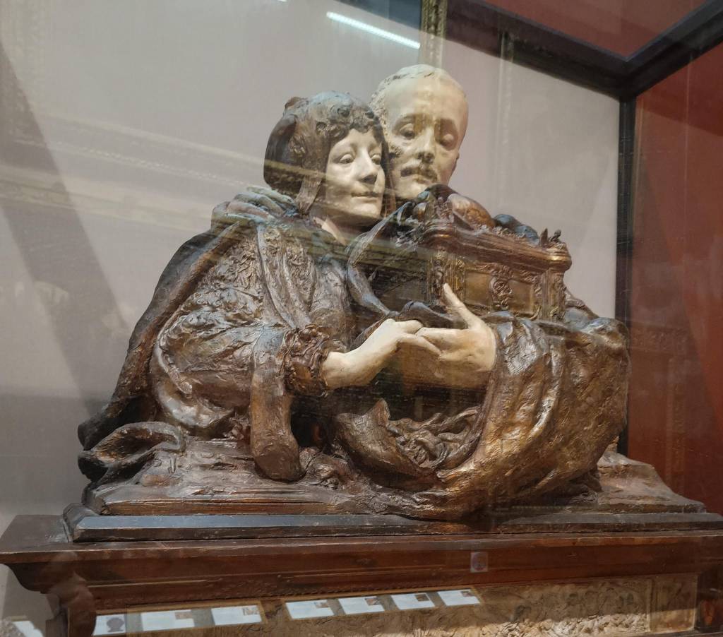 We refer to Mors Janua Vitae (Death is the Door of Life) by Alfred Gilbert (1854-1934). The work on display is preparatory to the funerary monument commissioned by Eliza Macloghlin to commemorate her husband’s work as a doctor, as well as their earthly love. The couple were atheists, so there are no religious references within the composition, but rather references to Anteros (unconditional love) and Eros (carnal love).
