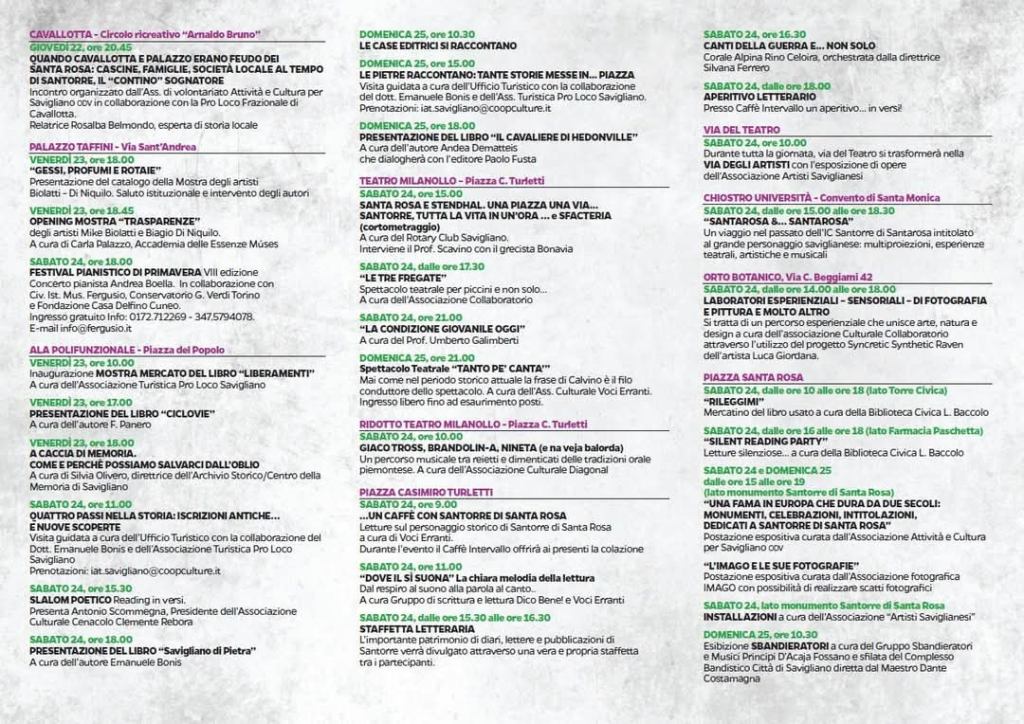 Vi aspetto sabato 24 Maggio, ore 16:15 circa, presso l’Ala di Piazza del Popolo di Savigliano.